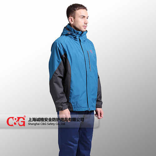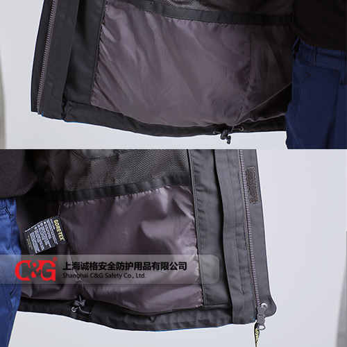 沖鋒衣 CG-CFF804采用符合涂層防水透氣面料制作,防水指數(shù)5000以上,可防中大雨;接縫全部采用壓膠防水拉鏈;內(nèi)膽采用高效保暖羽絨棉,可單獨(dú)穿著;風(fēng)帽可拆卸。
